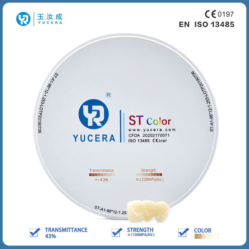 Dental Lab Zirconia Block ST color Preshade 98mm Transparency43% Strength 1200 Block A1-D4 for dental cad cam milling system