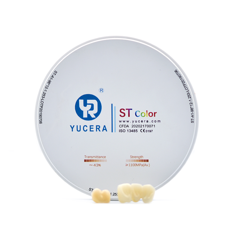 ST-preshade (ពណ៌) របស់ YUCERA ហ្សីកូនី ប្រែពណ៌ខ្ពស់សម្រាប់ការប្រើប្រាស់ជាសកល ដោយសារតែកម្លាំងខ្ពស់ និងតម្លាភាពធម្មជាតិ សម្ភារៈនេះអាចត្រូវបានប្រើសម្រាប់រចនាសម្ព័ន្ធដ៏ធំនៃការស្តារឡើងវិញដែលគាំទ្រដោយផ្សាំជាមួយនឹងសមាសធាតុអញ្ចាញធ្មេញមើលទៅមានលក្ខណៈធម្មជាតិទាំងស្រុង។ST-color មាននៅក្នុង VITA ធ្មេញបុរាណទាំង 16 ពណ៌នេះធ្វើឱ្យការកែច្នៃឡើងវិញមានភាពងាយស្រួល និងមានប្រសិទ្ធភាពសម្រាប់គ្រប់បន្ទប់ពិសោធន៍។ កាត់បន្ថយភាពស្មុគស្មាញក្នុងទម្រង់មន្ទីរពិសោធន៍ប្រចាំថ្ងៃ តាមរយៈលទ្ធភាពនៃកម្មវិធីពហុសញ្ញា។