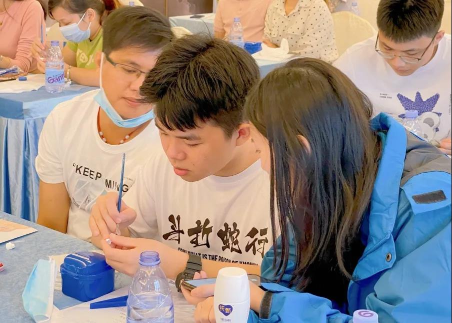 Gong Ting, senior lecturer and senior technician of Yucera Dental Technical Center, demonstrated the dyeing process before crystallization of zirconia ST white zirconium, explained the problems and details that should be paid attention to in the dyeing process, and arranged for the students to perform on-site operations. Instruct students to perform dyeing in a targeted manner. The students effectively combine theory and practice on the spot, which greatly improves their understanding of industry knowledge!